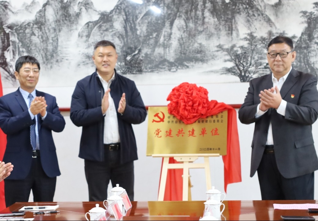 ▲王云龙主任、杨成东董事长、鹿名书记为党建共建单位揭牌