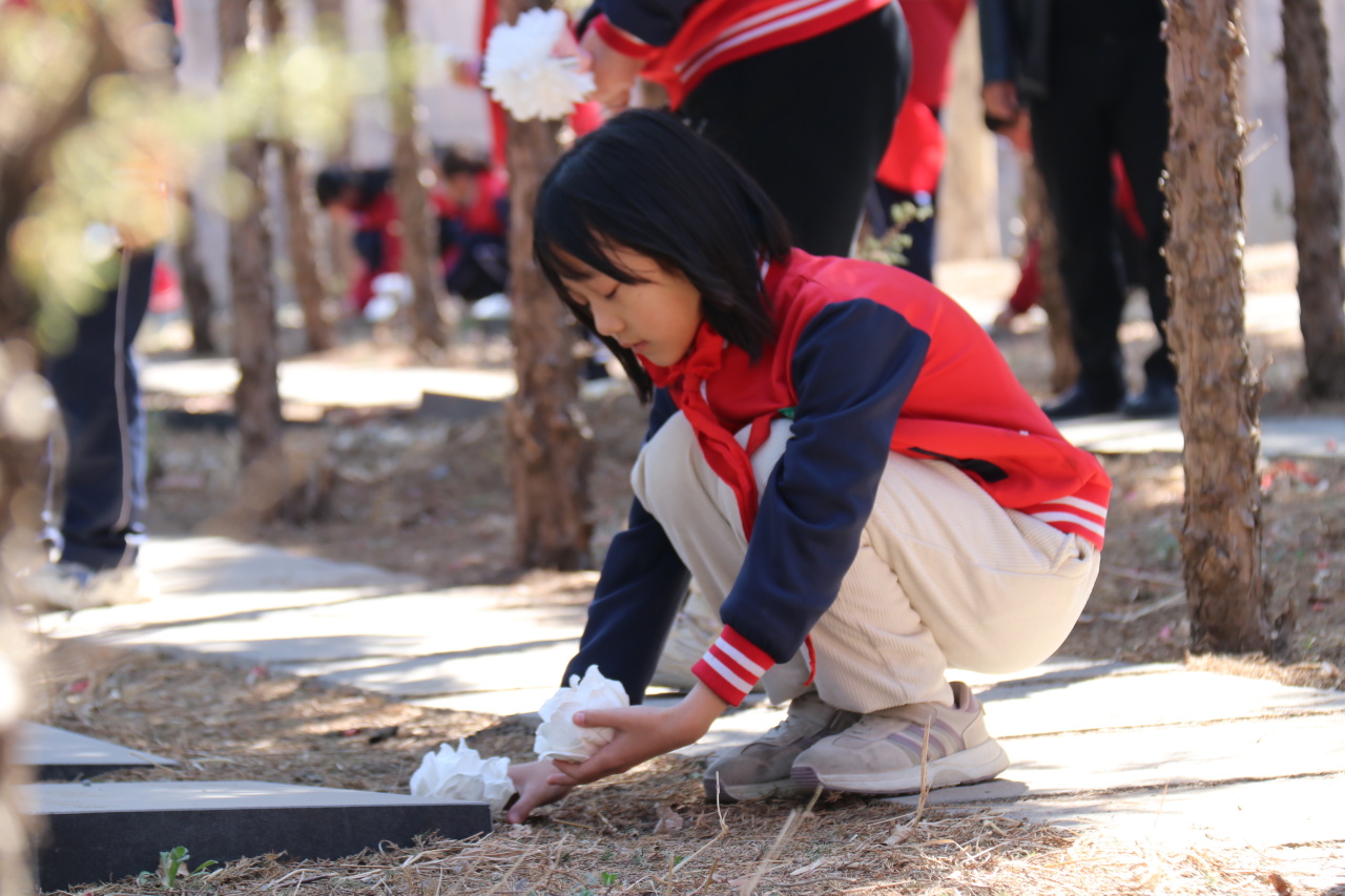 4月2日,姜庄小学组织少先队员代表到李仙社区公墓开展“清明祭英烈”活动。活动中,少先队员们通过集体宣誓、默哀、代表讲话、敬献花圈等议程,向革命先烈表达缅怀和深切敬意。同时,孩子们用纸巾自制小白花献给烈士,通过环保的方式缅怀先人,也将文明新风播撒在孩子们心中,让文明祭祀走进家家户户。