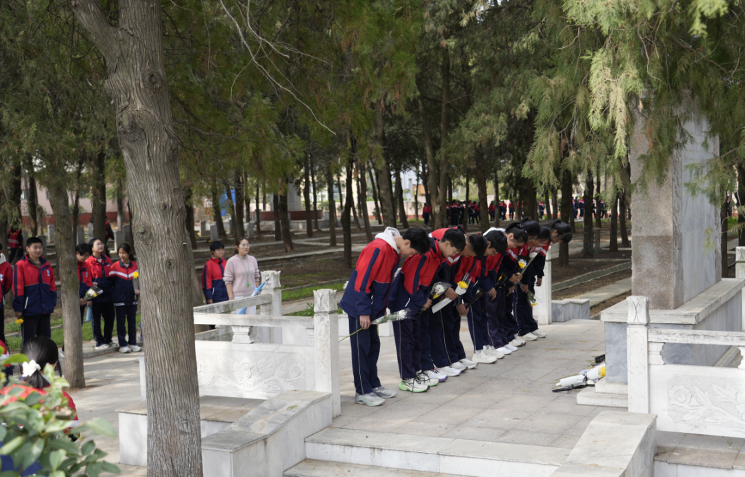 立新中学组织学生开展清明节祭英烈主题活动,同学们向烈士敬献鲜花,默哀致敬,随后庄严宣誓,表达传承遗志的决心。