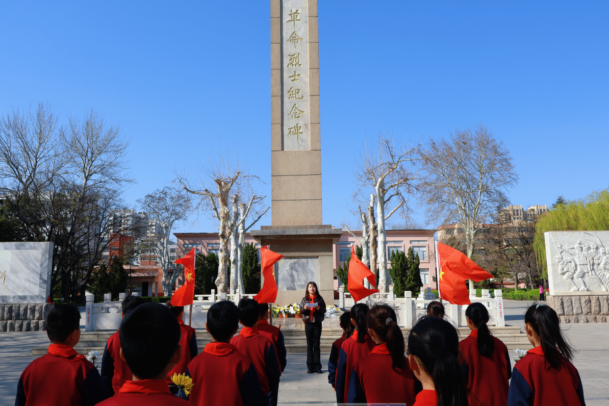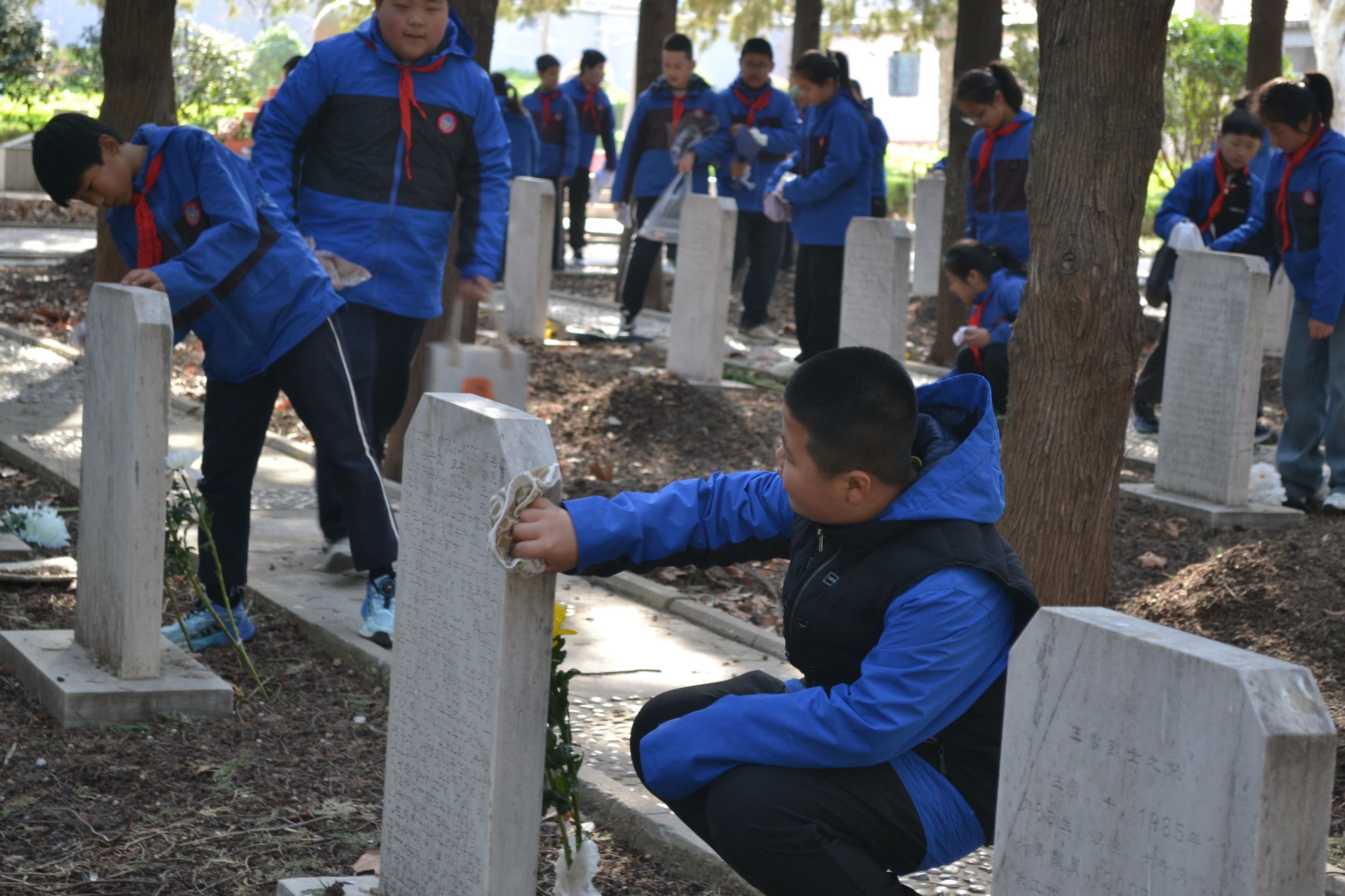 北关小学举行“清明祭英烈 丰碑励童心”清明节主题活动,五年级全体师生擦拭墓碑,敬献花圈,在孩子们心中播下了红色种子。