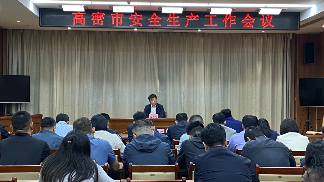4月27日上午,潍坊市安全防范视频会议结束后,高密市接续召开会议,对当前及五一期间安全生产工作进行再强调、再部署、再安排。市政府党组成员、副市长孙秀卿出席会议,市应急局党委书记、局长毛凤龙讲话。