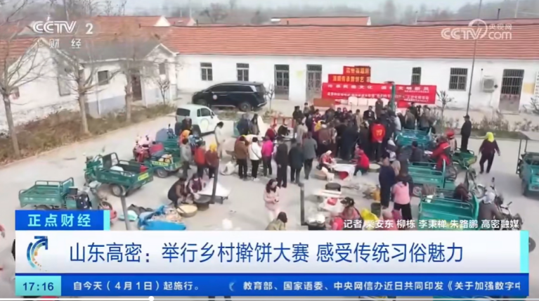 近日,联合“包了圆”爱心公益组织在阚家镇东杨岭庄村新时代文明实践站组织开展“我们的节日·清明节”——擀饼大赛活动,来自周边村庄的300多名擀饼能手自带搭档组队参赛。4月1日,该活动被央视财经频道报道。