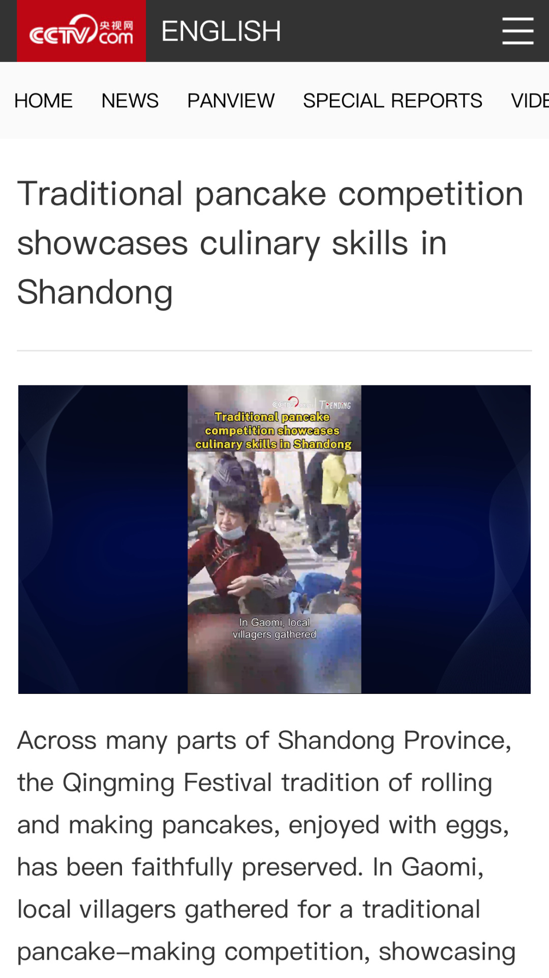 4月份,在各级外宣媒体刊发我市稿件10余篇。《潍坊高密:“钢铁侠”科技助力重生》《Traditional pancake competition showcases culinary skills in Shandong》等中英文稿件在央视频、视听山东刊发。