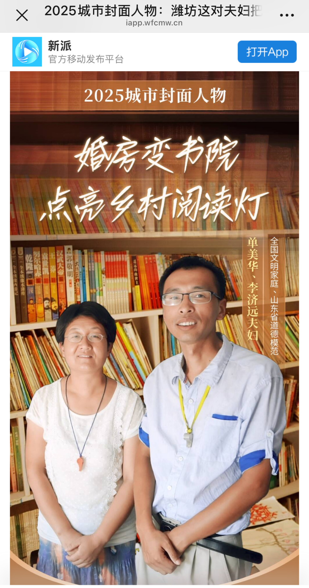4月21日,潍坊“2025城市封面人物”刊发我市山东省道德模范李济远、单美华夫妇事迹。