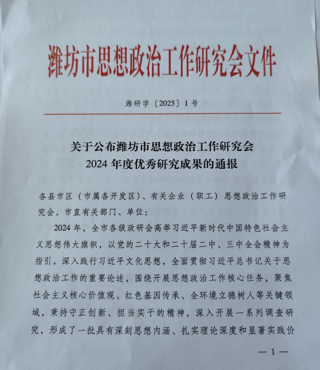 我市成果入选潍坊市2024年度优秀思政工作研究成果
