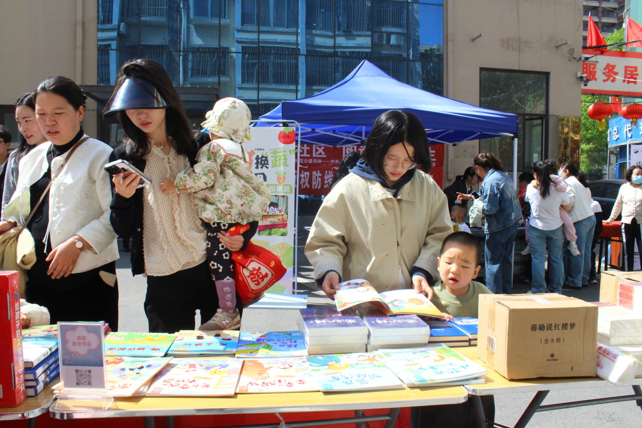 4月26日,市委宣传部组织远方文学、新华书店在北关社区举办“书香浸润社区 阅读点亮人生”主题活动,现场设置以书换“蔬”、非遗拓印、“画里寻诗”等互动环节,吸引众多居民热情参与。