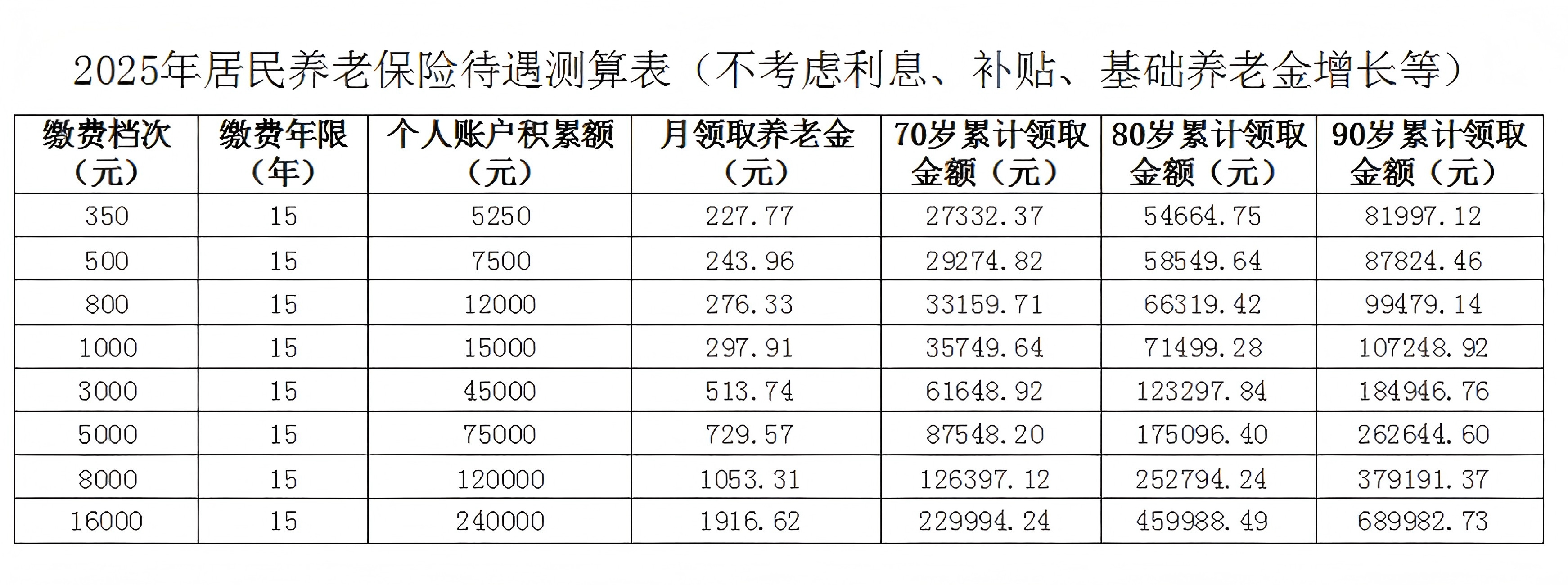 ▲各档次缴费养老待遇测算表