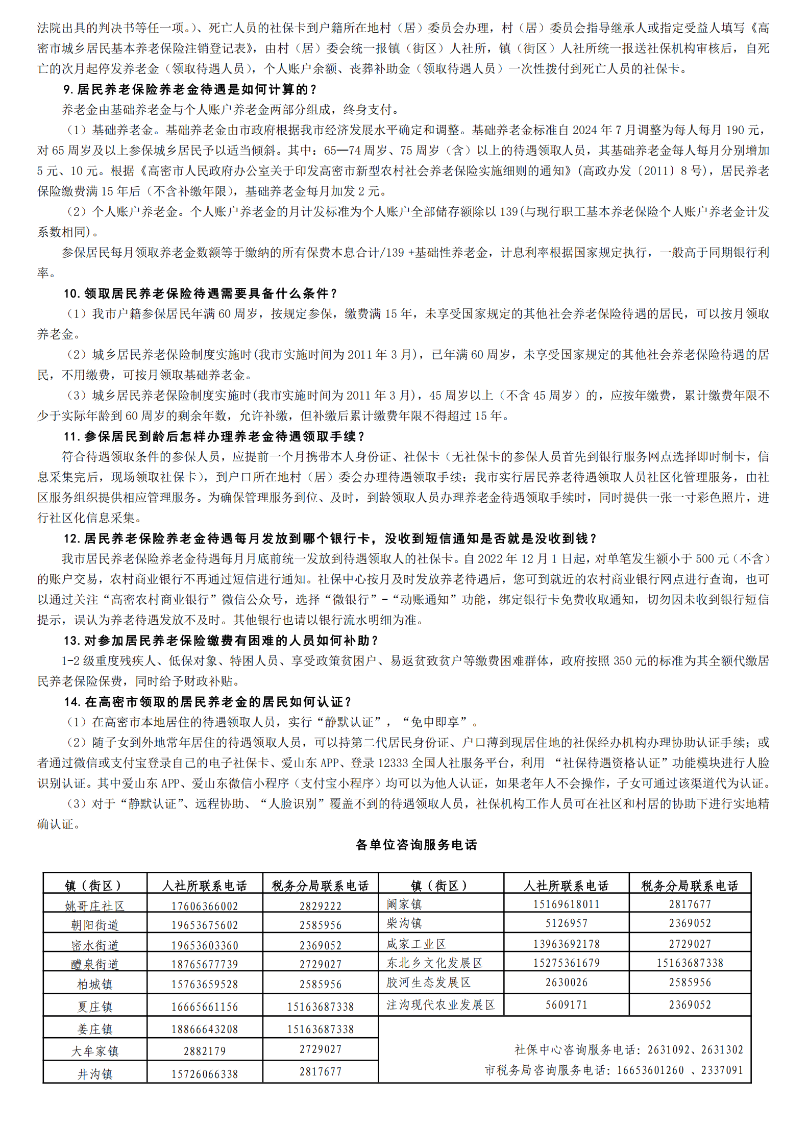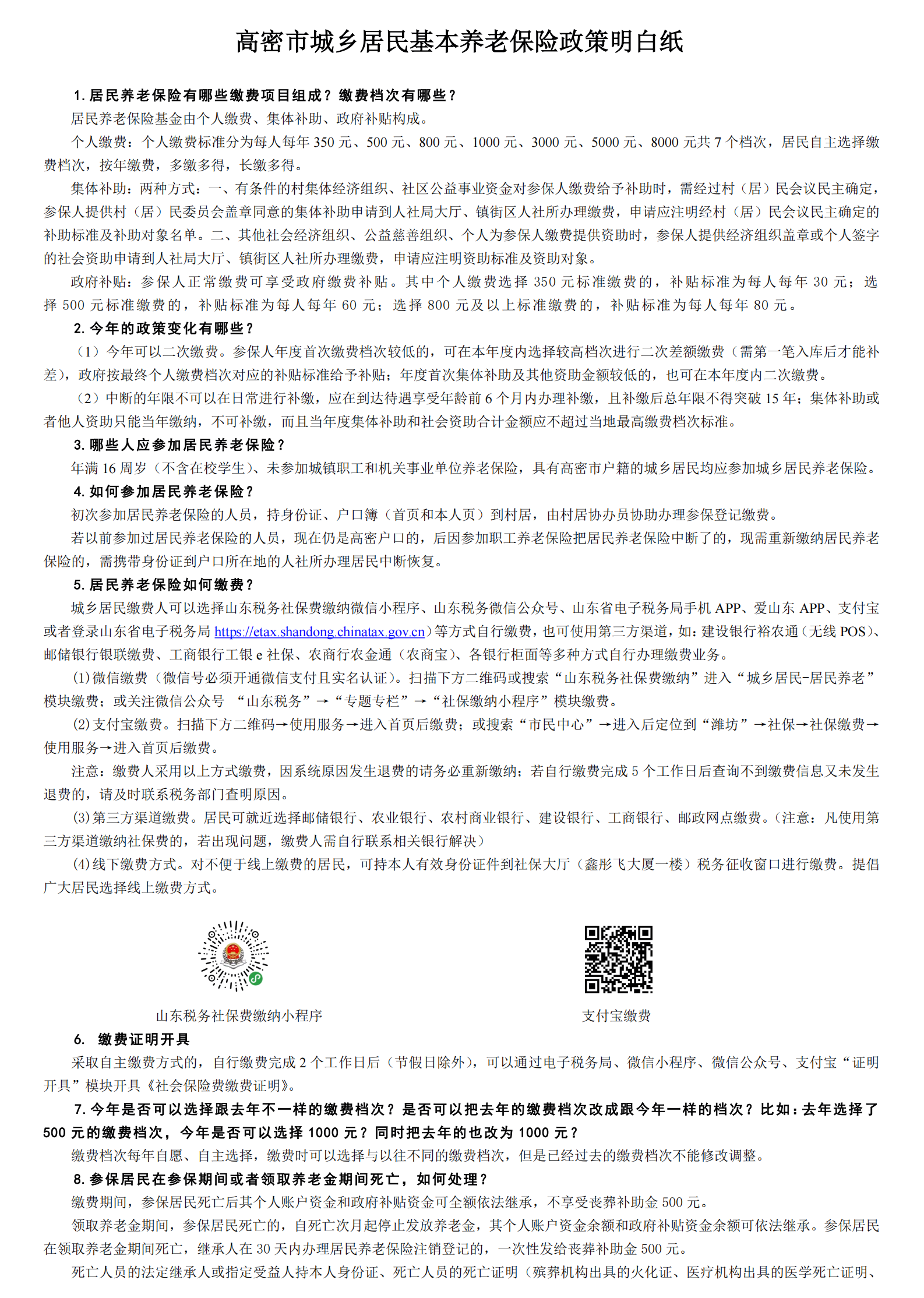 高密市城乡居民基本养老保险政策明白纸