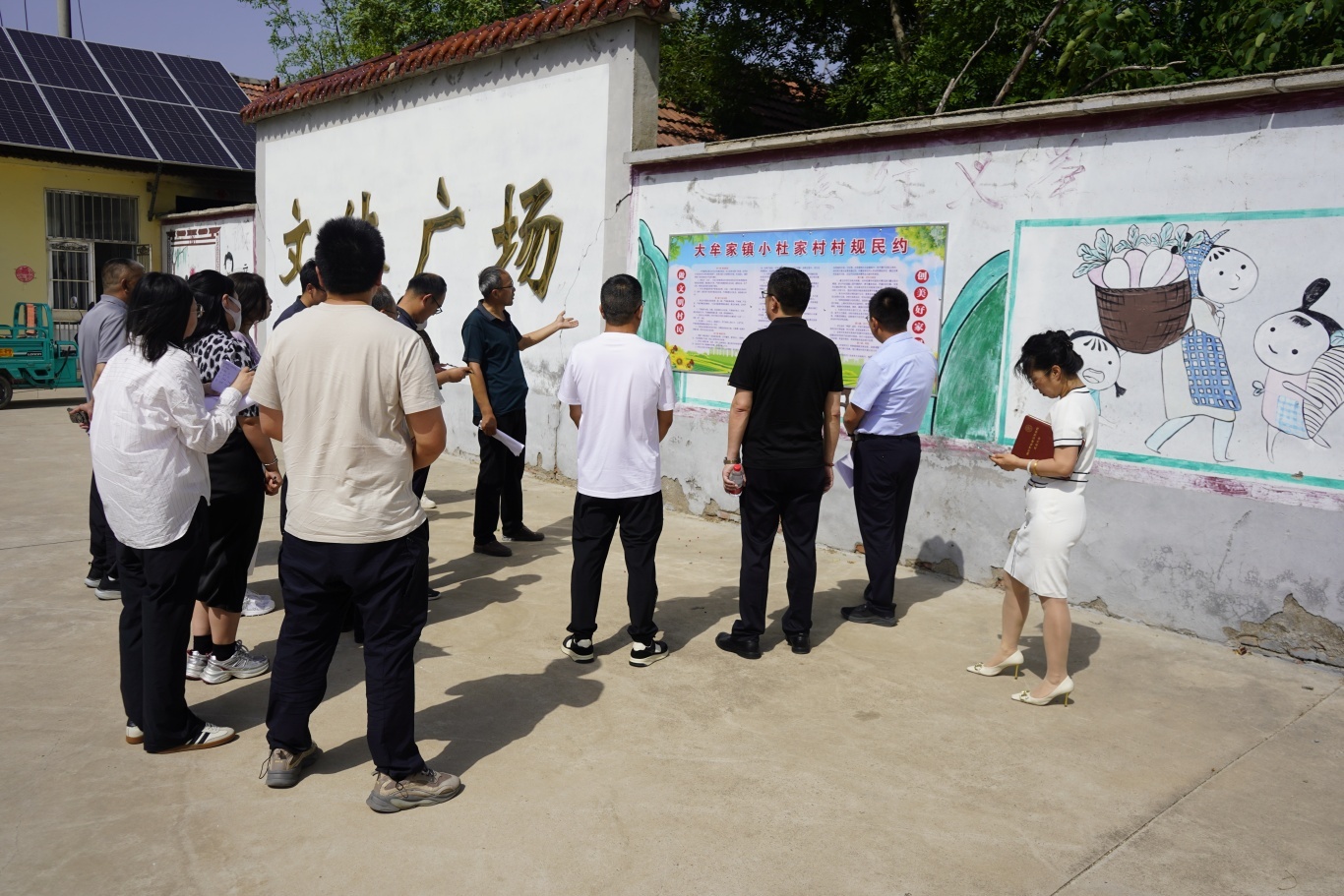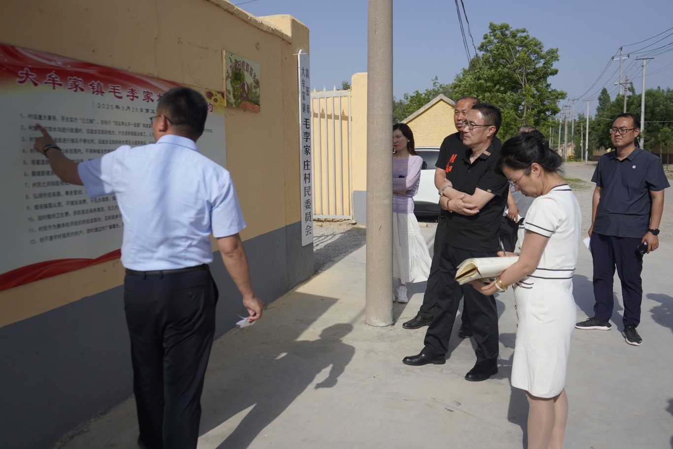 会前,与会人员实地查看各村村规民约公示栏,通过“听讲解、看实效、问做法”的方式,详细了解各村在环境治理、移风易俗等方面的实践经验。大家边看边记,用手机拍下特色条款,对可复制的“金点子”进行重点标注。