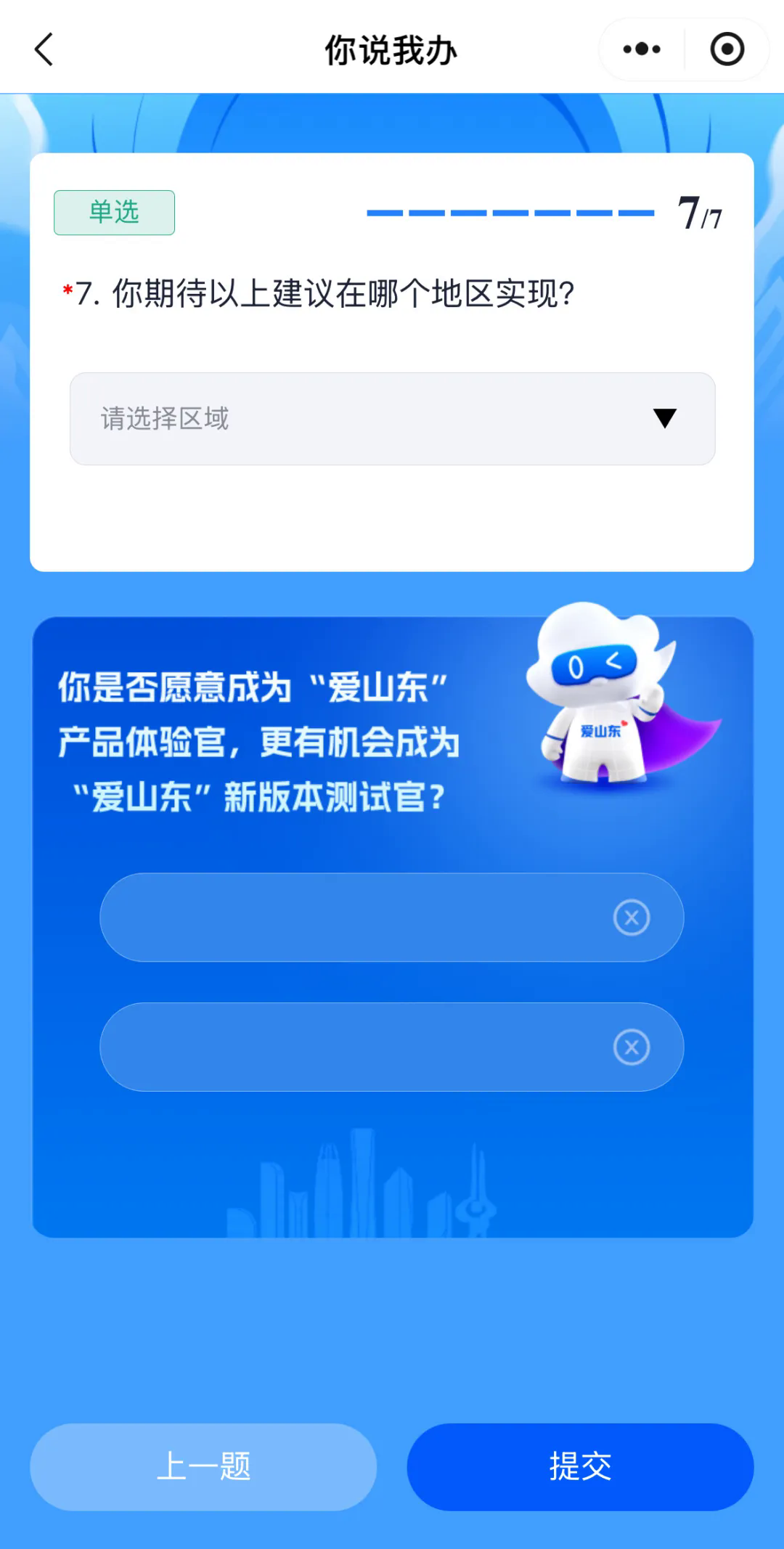 打开“爱山东”APP、微信、支付宝小程序,首页搜索“你说我办”,点击进入活动页面。