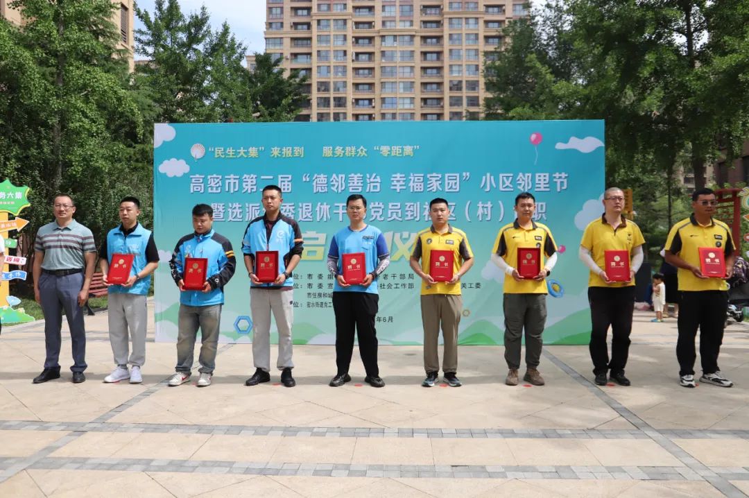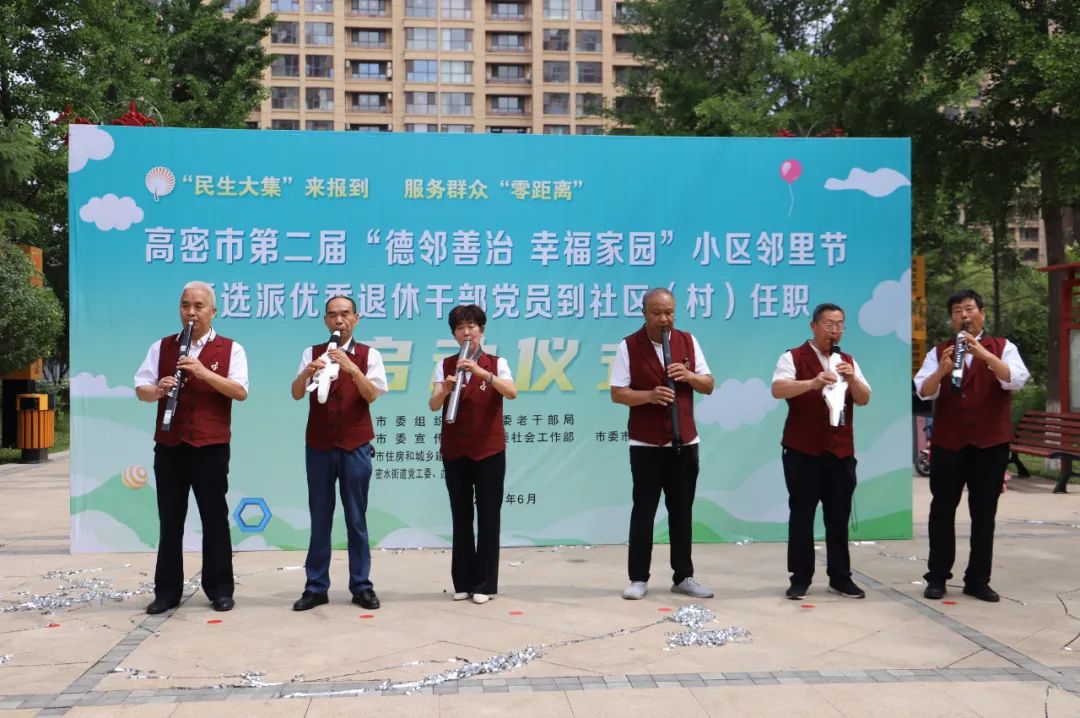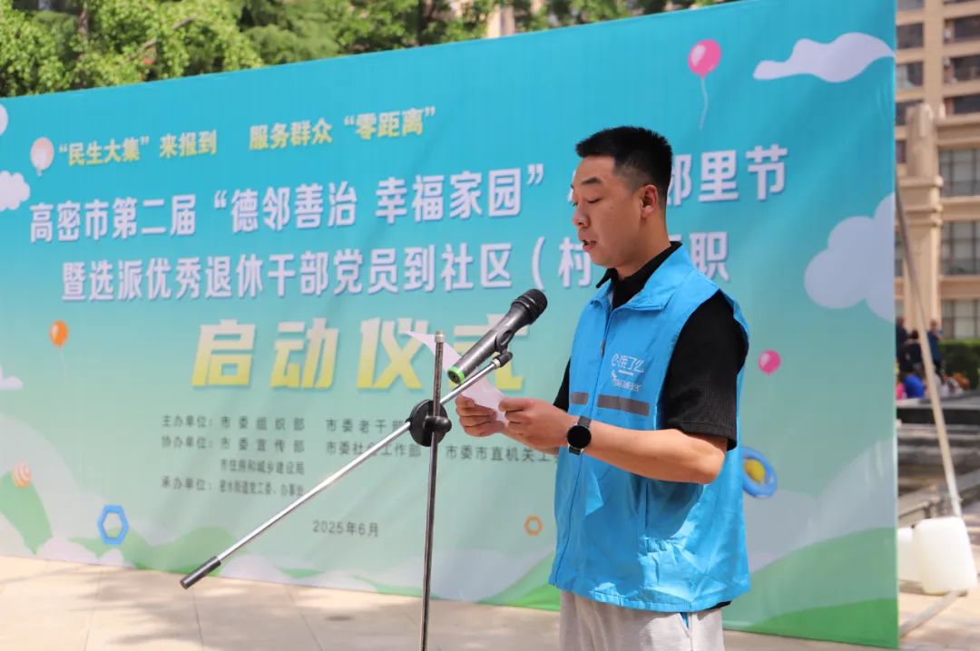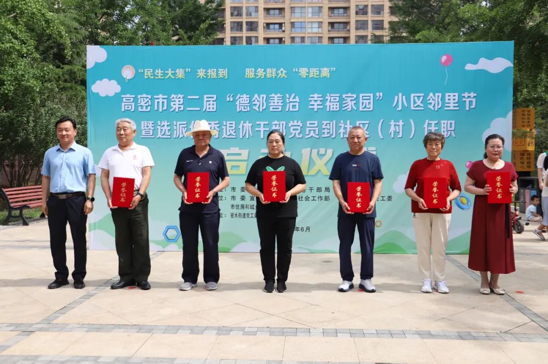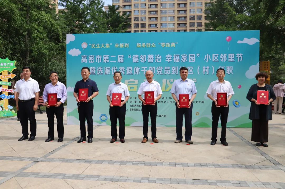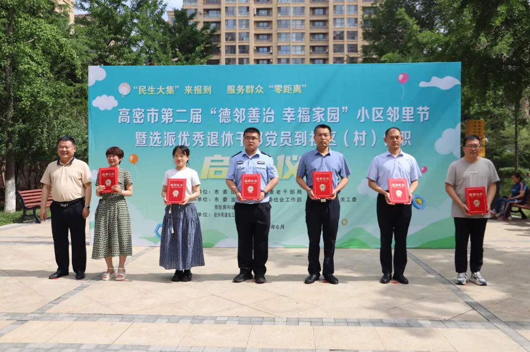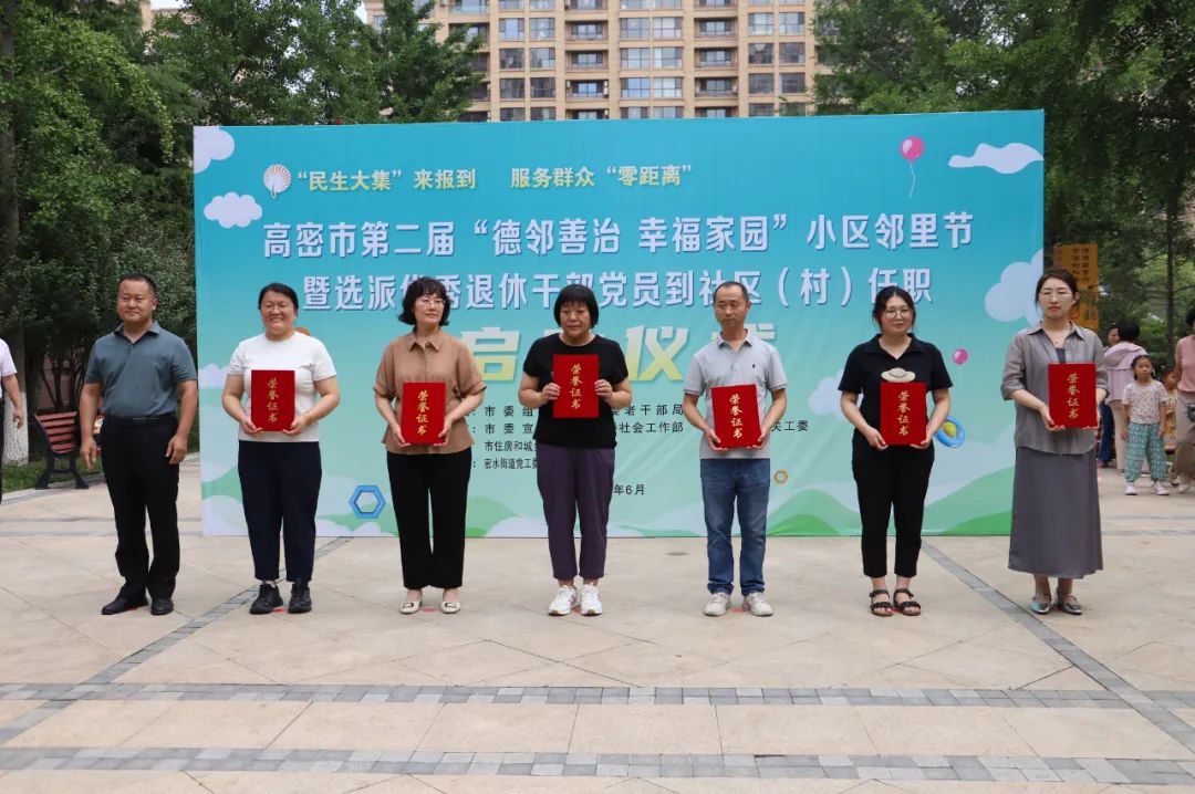 为加强党建引领基层治理,弘扬邻里团结、互助和睦的传统美德,建设安定祥和、温馨和谐的幸福家园,6月21日,高密市第二届“德邻善治 幸福家园”小区邻里节暨选派优秀退休干部党员到社区(村)任职启动仪式在密水街道湖光金色小区举行。市委宣传部分管日常工作的副部长、市网信办主任薛永文,市委社会工作部部长、“两新”工委书记李彬,市委市直机关工委书记牟林,市委组织部副部长、老干部局局长张武伟,市委组织部副部长唐召康出席活动,密水街道党工委副书记、办事处主任东辉主持。湖光金色小区党支部书记陈晓,“双报到”单位代表市司法局,物业经理代表荆海燕,派驻社区“第一书记”代表禚召聪,外卖骑手代表杨建富依次发言,表示坚持党建引领基层治理,积极参与小区活动,全力营造和谐友善的邻里氛围,共同打造幸福家园。