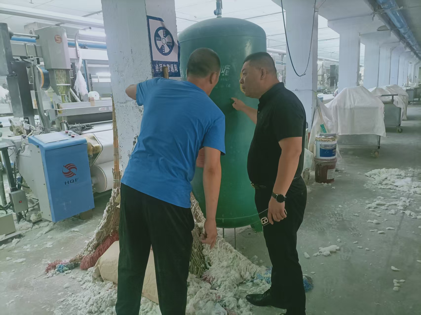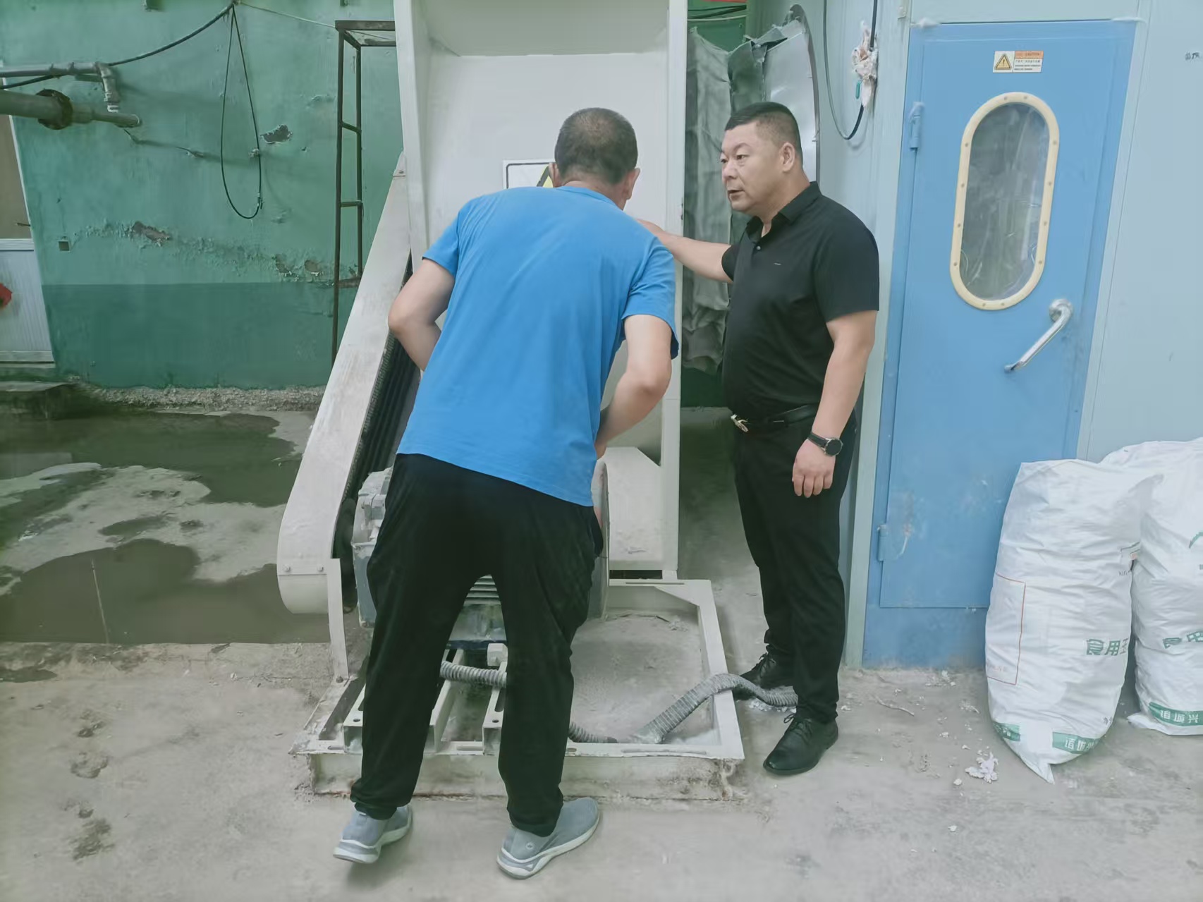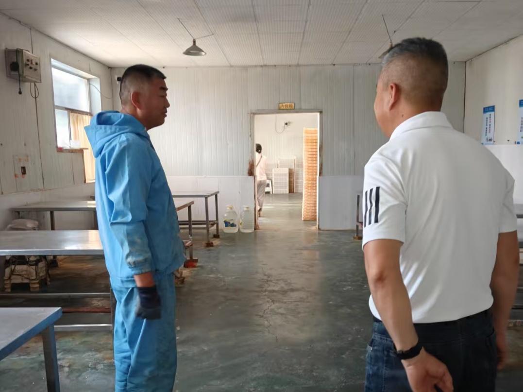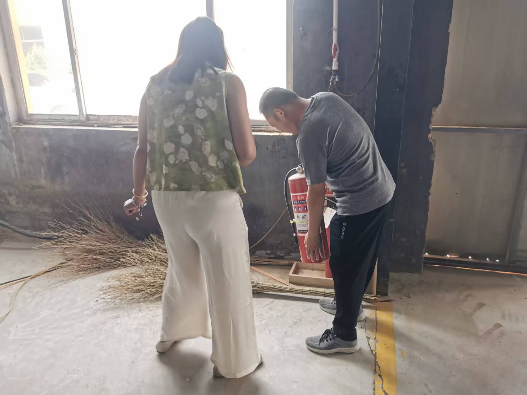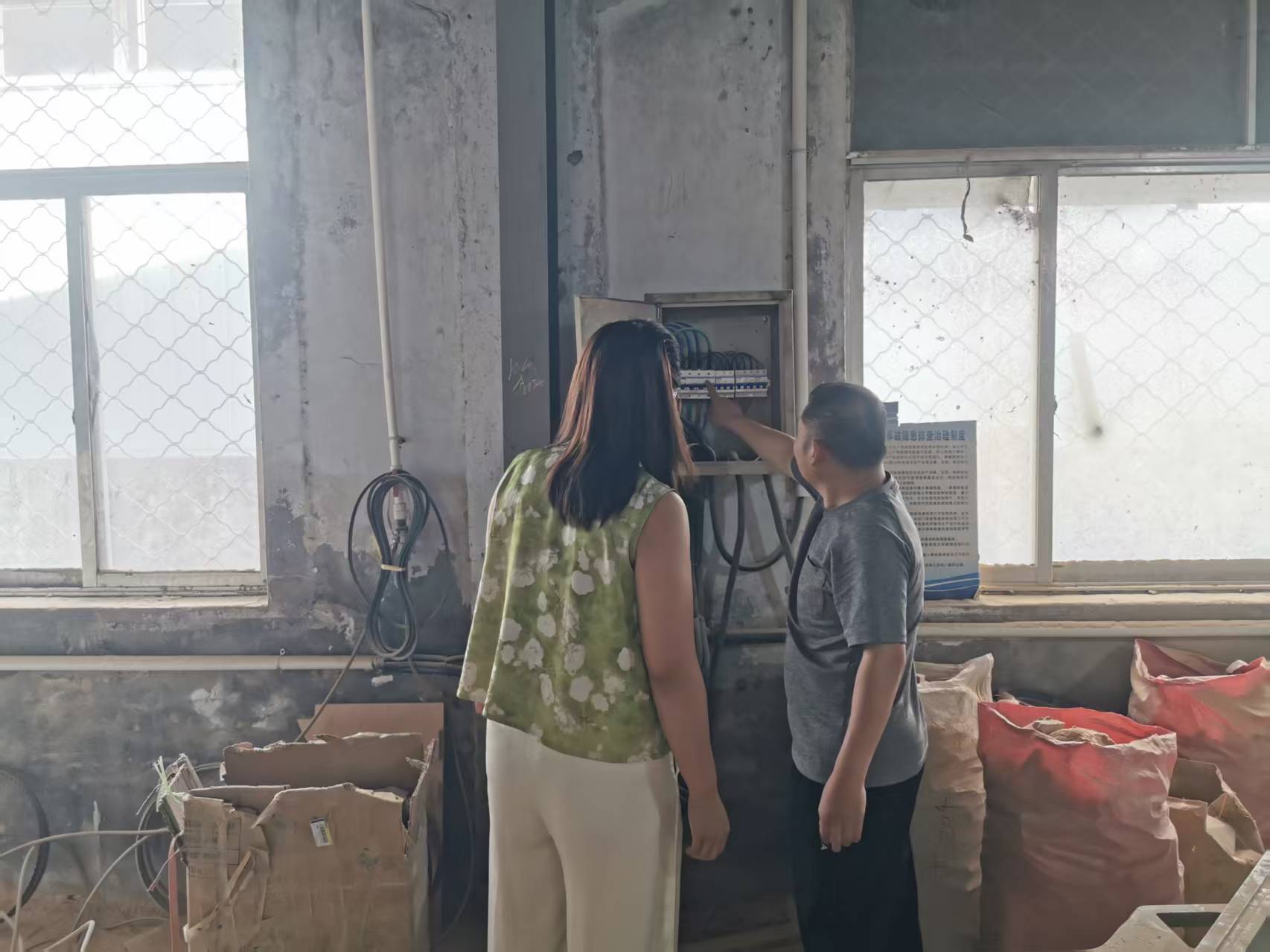 ▲现场勘查农副产品加工业、储粮烘干及沼气设备安全