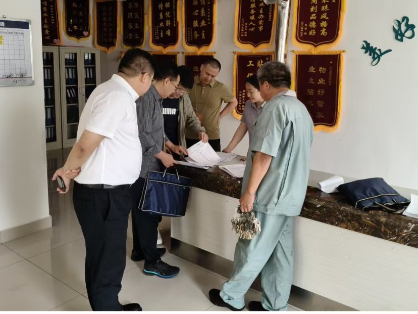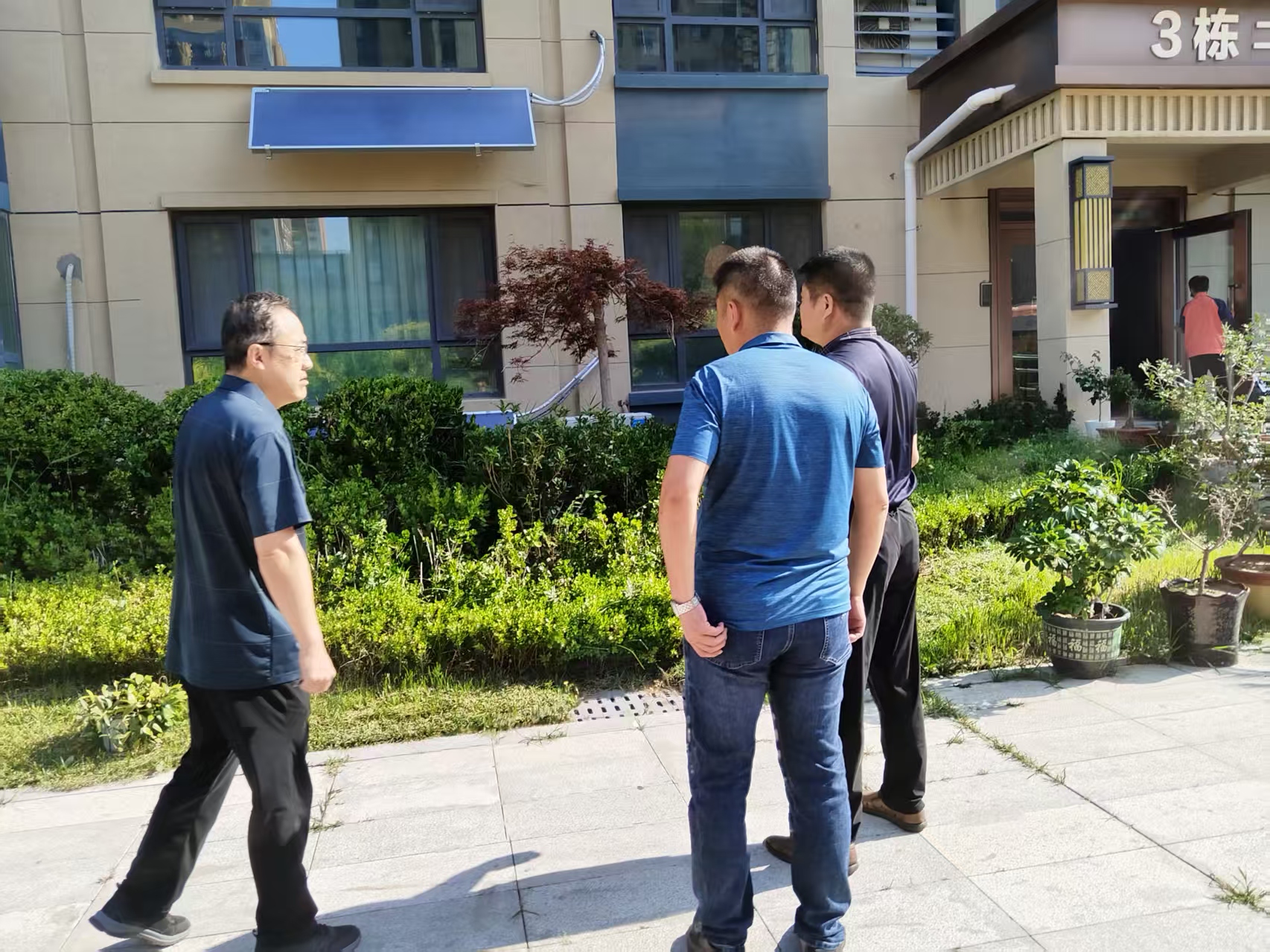 6月17日上午,高密市物业服务中心党支部委员、副主任张芳带队到街道北大王庄社区研究北大绿洲和新新家园小区房屋维修问题。