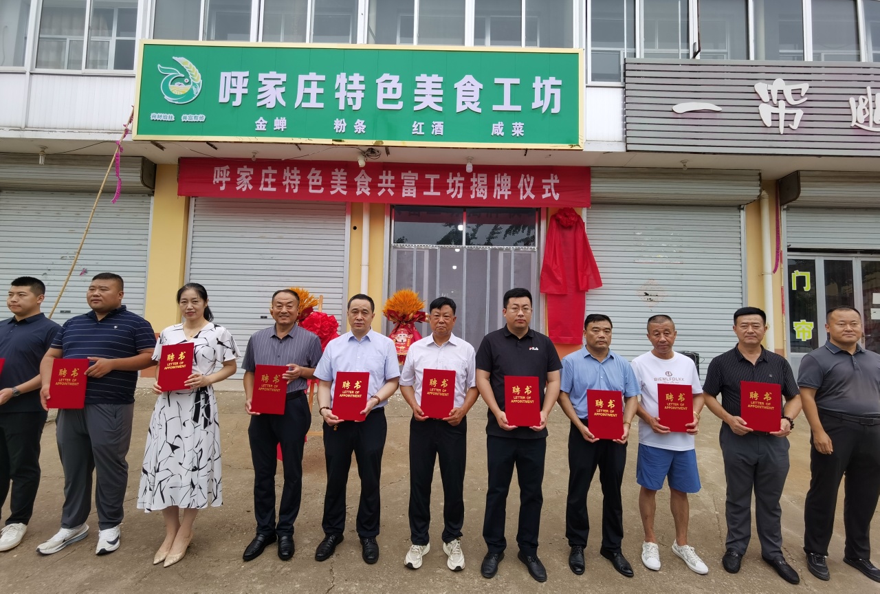 为充分发挥党建引领基层治理成效,激活乡村产业振兴动能,点燃“共富工坊”建设引擎,7月16日上午,呼家庄社区特色美食共富工坊暨山东高密技师学院电商实践基地揭牌仪式在井沟镇呼家庄社区集西村成功举办。