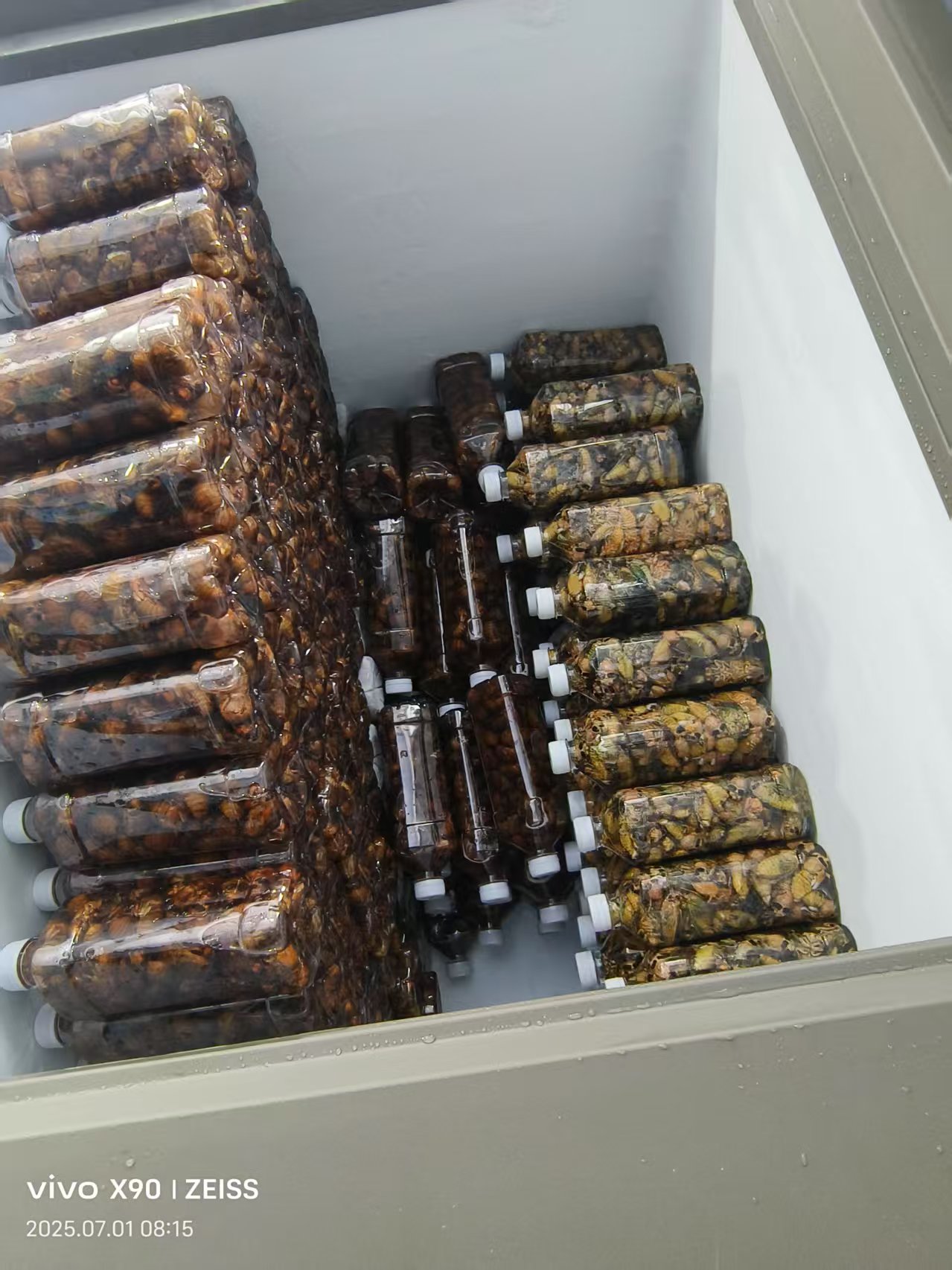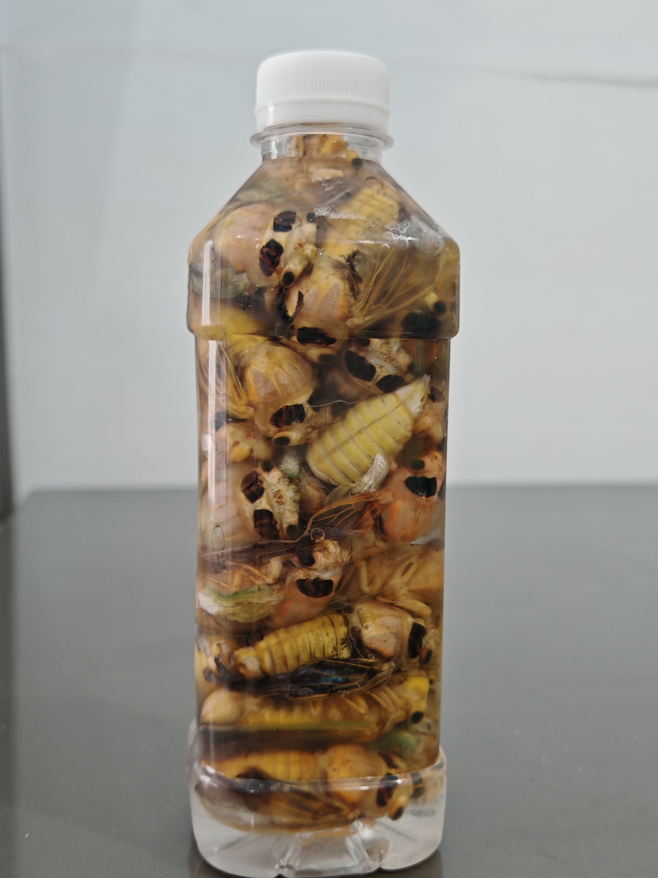 呼家庄金蝉坚持使用全新食品级专用瓶,每一个瓶子都经过严格检验,每一只金蝉都要经历一场“洗礼”,而且为本地纯野生,肉质饱满厚重,一斤金蝉约有100个(平均5克/个)。金蝉色泽金黄油亮,肉质紧实弹牙,蝉鸣后发育成熟的蛋白质含量高,口感浓郁鲜美,回味甘醇。